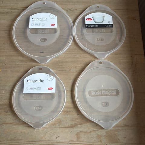 Ny silikonlokk, ø 14 cm, kan brukes i mikro/kjøleskap/freezer. Kjøpt i Japan. kr 50 hver