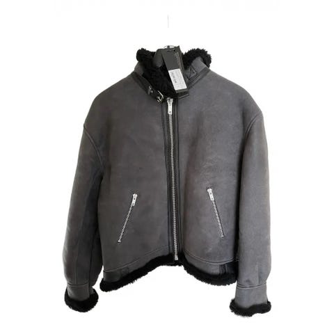 Vintage herrefrakk. Brun semsket skinn med varm fuskepels for.