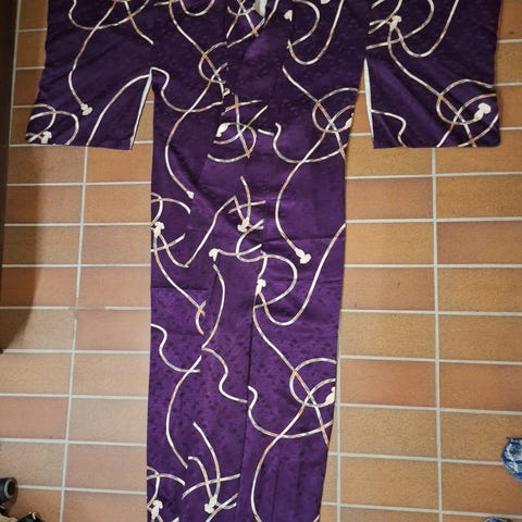 Obi-beltet er motetilbehør som består i å justere størrelsen på kimonoen og stramme den. Kinomoens magiske tilbehør som skaper en kontrast mellom den japanske kimonoen og resten. Nydelig mønster. Lengde ca 4 meter/bredde 30 cm. Lite område på bakside har en vannskade, men blør ikke gjennom på motiv. Se bilder detaljer.
