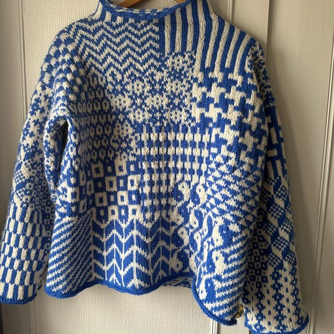 En overdimensjonert genser, helt ny, aldri brukt. 50% ull, 50% akryl.