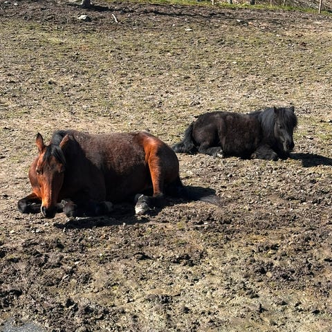 Vi etterstreber at alle hester skal stå sammen med med minst en kompis, og optimalt i flokk med flere. Deles opp etter hestens behov/rang.