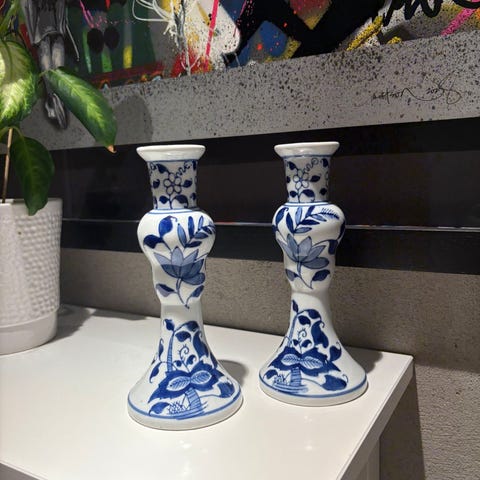 Selger 3 stk kule retro lysestaker i porselen/keramikk. Den ene lysestaken har blitt limt før. Men gjør fortsatt jobben sin. Se høyde under bildene . Kan hentes i Grimstad eller sendes med postnord til 69kr.