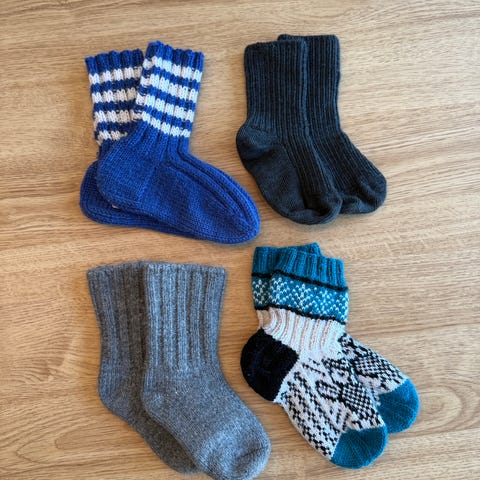 Selger en del babysokker i ull og alpaka ull, ca. str. 14- 18 fra Safa, MP, Reflex blant annet.