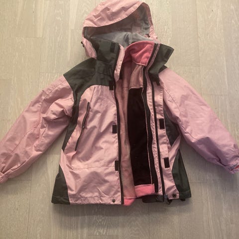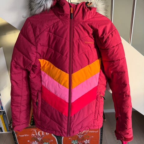Skijakke, godt brukt med snølås. Mye bruk igjen. Er er et par hull i hetta, og bakpå jakken. Se bilder