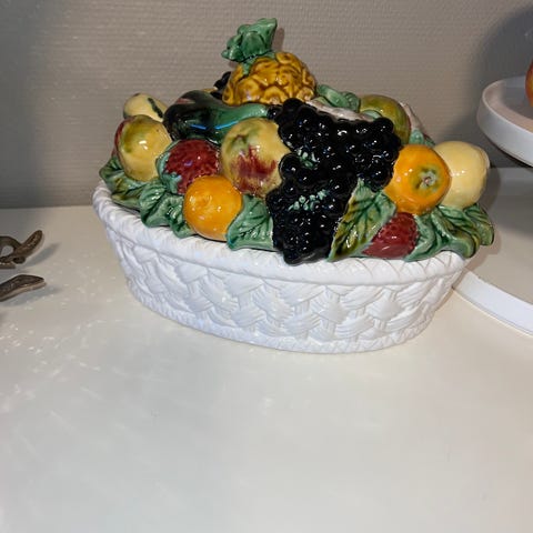 Vintage Jay Willfred div. Andrea By Sadek. Stor terrine/skål med lokk. Frukt motiv.