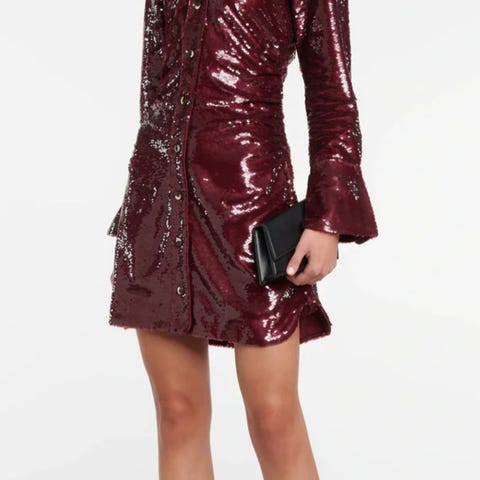 #ganni #paljett #burgunder #rød #fest #skjortekjole