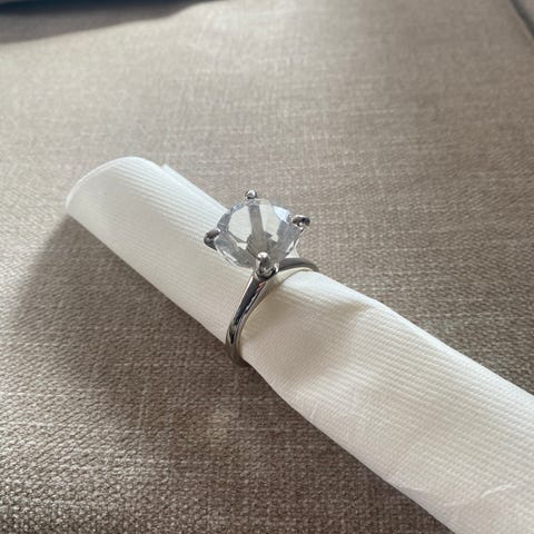 4 stk dekorative hvite og blå mønstrete håndmalte serviettringer, u/skader selges . Kan sendes. Fast pris