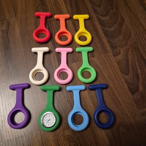Selger navneskilt beholder og ur, kun brukt under simulering ved høgskolen under sykepleie utdanningen. Fremstår som nytt. Nytt navneskilt kan bestilles på nettet 😊