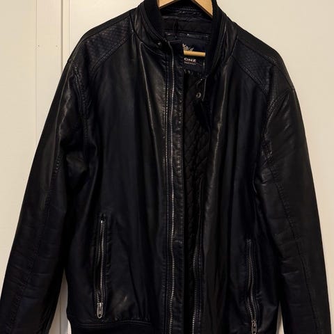 Tiffosi skinn jakke med hette selges rimelig. Brukt kun noen få ganger. Svært god stand. Eneste er at det er litt misfaring på hette, men det kan tas av og vaskes.