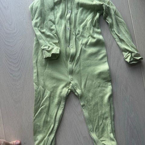 Pysj brukt av ett barn. Vasket på 30 grader etter anvisning. Synes denne er litt liten i størrelse, så vil si den passer str. 92/98. Veldig fin og varm pysj for sensitiv hud. Ganske tykk i stoffet da den både har ett lag bambus og ett lag bomull.