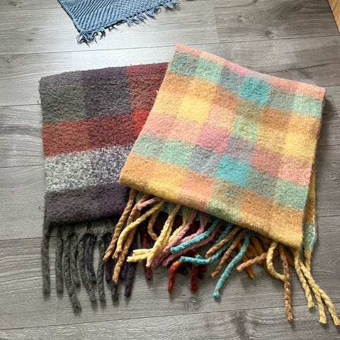 Store varme skjerf som holder deg varm på kalde dager. Kjøpt hos Monki, Only etc.