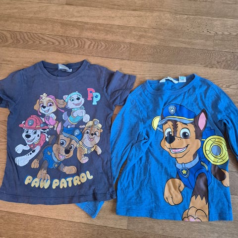 Selger en stor klespakke i str. 2-3 år (tilsvarer str. 98) ser kun en liten flekk på en av t-skjortene ellers er det ingen synslige flekker på klærne og ingen skader og noen av plaggene er svært lite/ikke blitt brukt. Klærne er kun brukt til ett barn. Samlet er prisen 800 kr. Ellers se under bildene for pris per plagg/sett. Noen av klærne er I paw patrol. Flere plagg med dinosaurer og biler.