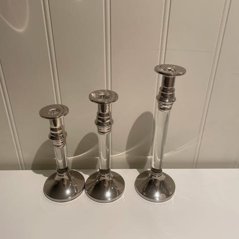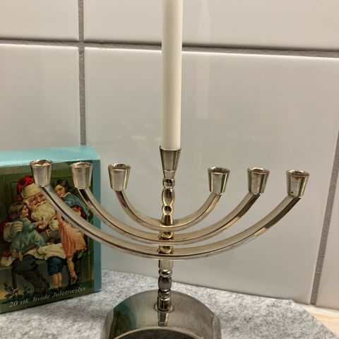 Et par klassiske lysestaker (3armede) selges. Usikker på materialet, ser ut som sølv, men er lette.