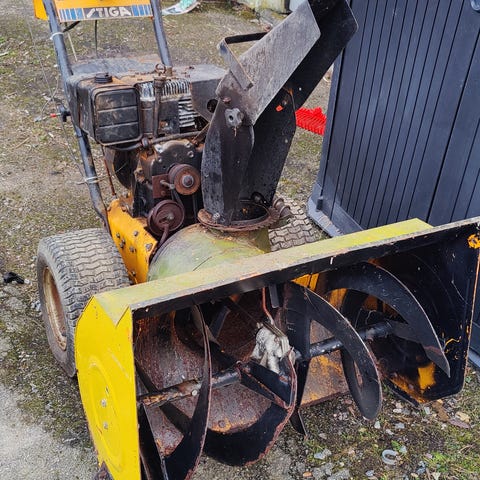Eldre Stiga 828 snøfreser selges. Har nå byttet bensinslange, renset tank, renset forgasser, byttet motorolje, byttet friksjonshjul og smurt bevegelige deler. Wire til regulering av utkaster ble byttet i fjor. Byttet motor for 8-10 år siden og monterte da inn en tecumseh motor som jeg mener skal være 10hk (originalt8 hk). Fresehus bør lakkeres og utkasterhus bør sveises og lakkeres for bedre kastelengde. Det er ett lite hull i plata i utkasterhuset. Selges som den er uten noen form for garanti! Kan være behjelpelig med frakt innen rimelig avstand mot ett lite honorar. Dette er freser for de som er litt nevenyttige!