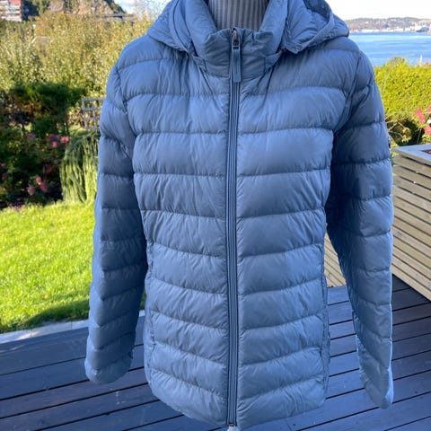 Tynn boblejakke som er super å bruke på senhøst og tidlig vår. Flott blåfarge. Brukt kun 2 ganger, og er vasket. Har blitt for stor.