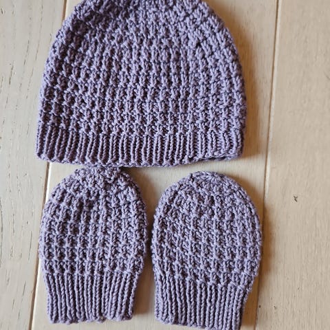 Hjemmestrikket ull lue og votter
