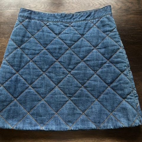 Kåpe i denimstoff fra Ganni i størrelse 40/M. En passform som jeg vil si passer flere størrelser. Vil beskrive fargen som pastell/lys rosa. Trolig brukt en gang.