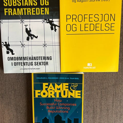 Jeg selger følgende bøker, perfekt for studenter innen økonomi, ledelse og juss: