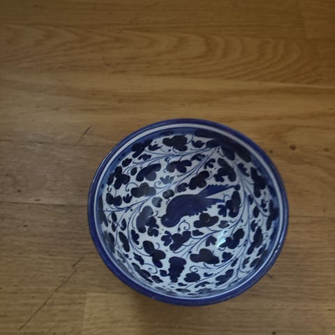 Blå skål i hel og pen stand