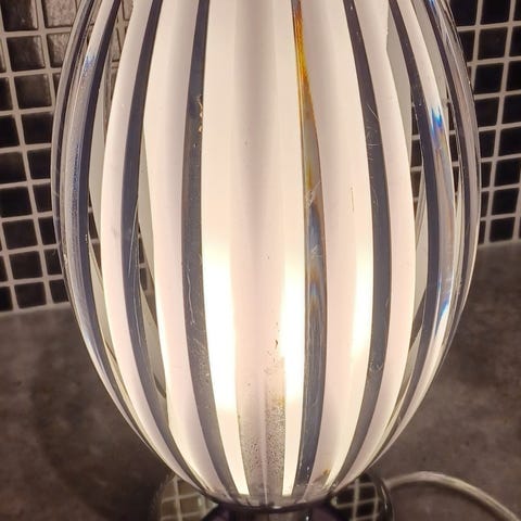 Selger ei flott bordlampe i stål og glass.