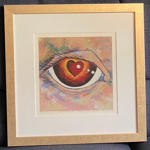 Vakkert abstrakt stort maleri malt av Borghild Thyri