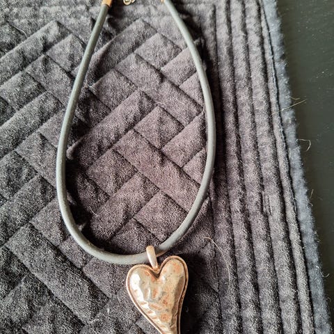 Smykke fra hjerter, flotte detaljer. Fargen minner om oksidert sølv