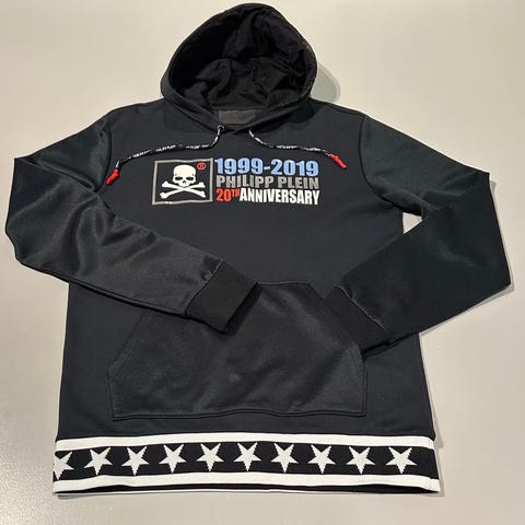 Tøff hettegenser som tilsvarer Small i størrelsen selv om det står L.