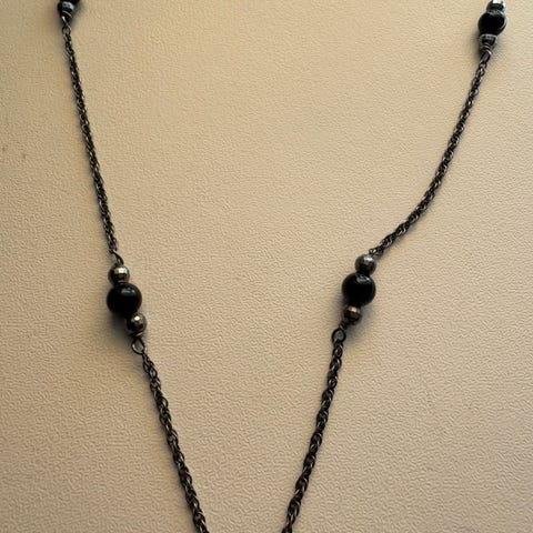 Grått og svart smykke selges for 50kr.