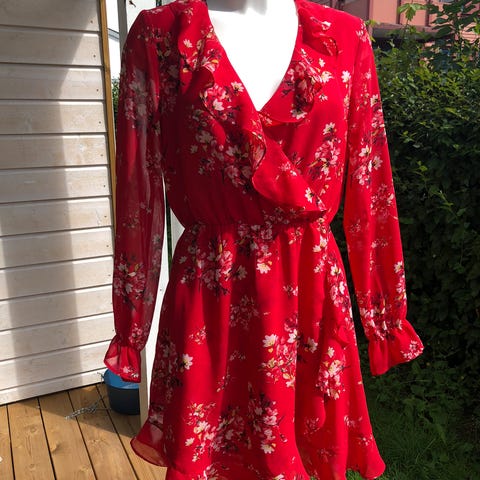 Rød blomstret kjole M-38