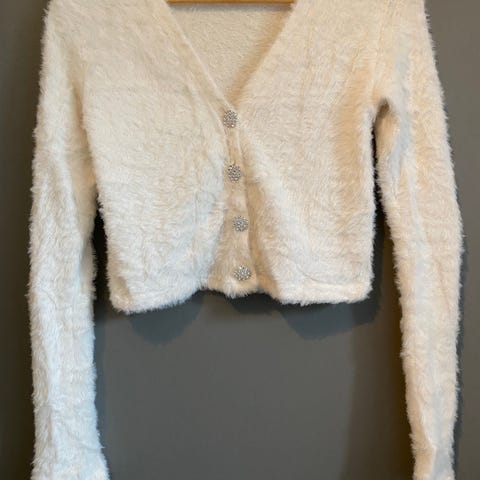 Jakke og singlet i loddent stoff. 2 delt sett i hvit. Str. S (les beskrivelse)