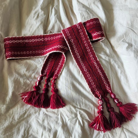 Koftebelte, festdrakt, bunad, belte, bånd, pyntebånd, Håndvevd, knytebelte, veskestropp, vikingbelte, vikingkjole, vikingdrakt