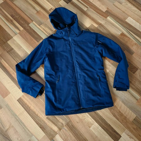 Lommer foran (side og bryst), på arm og innerlomme. Avtagbar hette med snøring. Tommelhull. Snøring nede. Vannavvisende. Flott jakke til utendørsaktiviteter vinterstid.