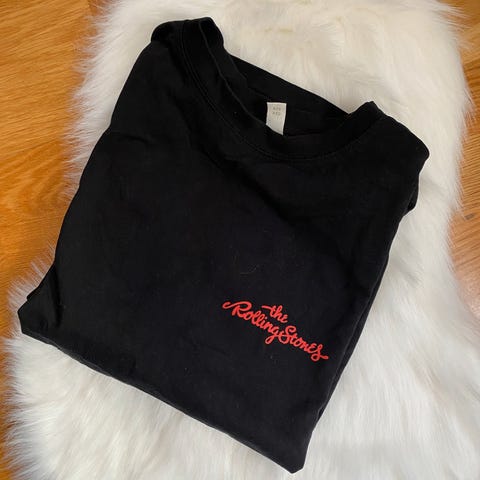 Helt ny t-skjorte (100% bomull) til jenter/damer fra Inti Vintage i Los Angeles med håndtrykket Rolling Stones design. Str. medium (crop). Nypris ca. kr. 600,- med US tax.
