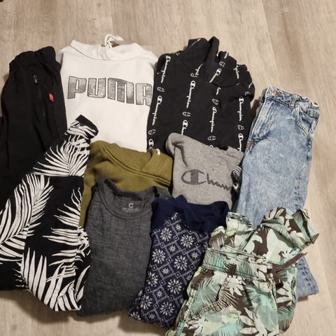 Alt er pent og lite brukt, noe ikke brukt kun vasket. Ene ullbuksen har et lite hull, men det er altså det eneste plagget som er antydet brukt.