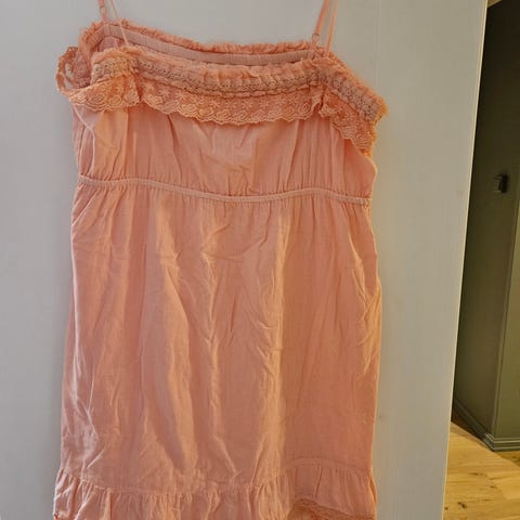 Kjole/underkjole i nydelig rosafarge som går mot terracotta.