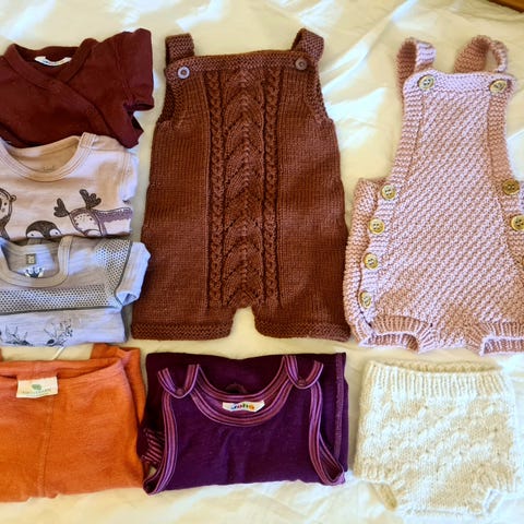 Selger 3 stk strikkede rompere. Ca str 62. Selges enten for 150 kr pr. stykk eller 350kr samlet.