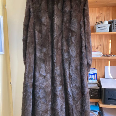 Vintage brun minkkåpe i størrelsen 40/42 selges. Det har vært min avdøde mors kåpe, men den er for stor for meg.