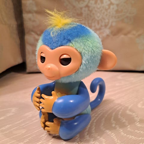 En søt apebamse fra Fingerlings. Den batteridrevne apen lager lyd og har bøyelige armer og ben.