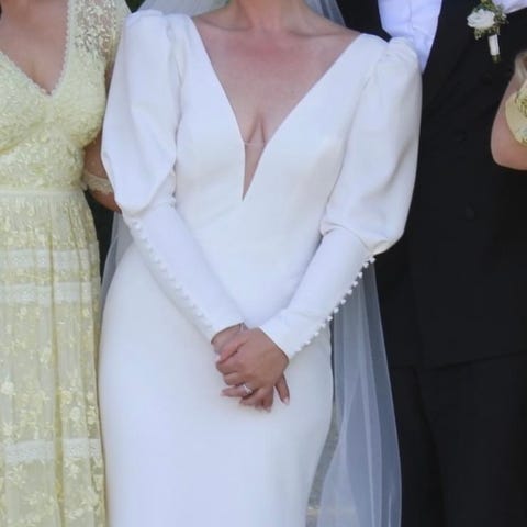 Den ble sendt på renseri kort tid etter bryllupet og følger med merkelapp og pose.