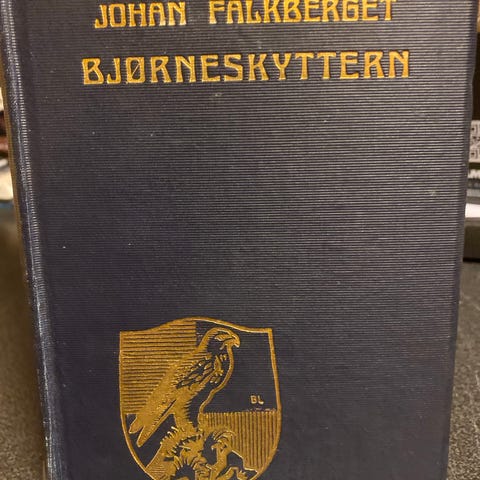 Johan Falkberget: Bjørneskyttern. Kristiania 1919. Boken er flott innbundet i rødt originalbind med pen dekor. Pen stand. Kan sende.