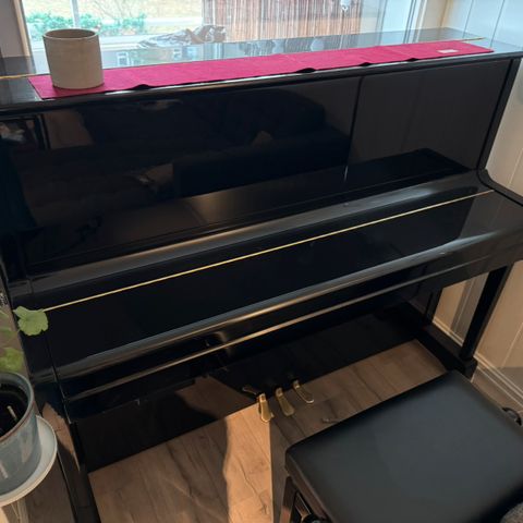 Schimmel piano, såkalt lampemodell. Stemmenaglene sitter som i et nytt piano. Det gis 10 års garanti ved bruk av installert FUKTER.