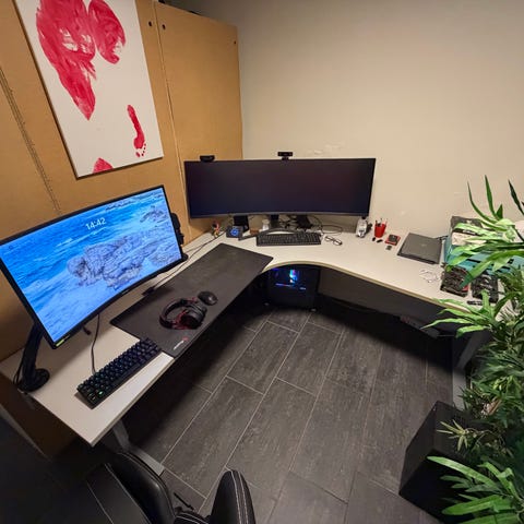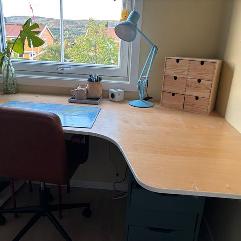 DNA Skrivebord med 1600 x 1200 mm med venstrevrid bordplate.