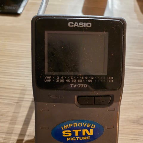 Gammeldags retro bærbar tv fra en svunnen tid. 80/90-tallet. Skjerm og alt elektronisk funker. Men bare snø på skjermen da det ikke er noen tv signal på antenne. Hentes i sarpsborg eller sendes med norgespakken til 73kr på kjøpers regning