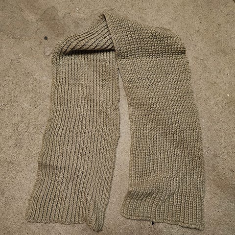 Deilig skjerf med hette. Lys grå, og litt «pusete» garn. Varm og godt, litt ull i det.