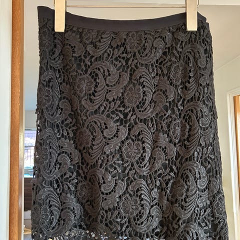 Som nytt Tory Burch mørkeblått blondeskjørt.
