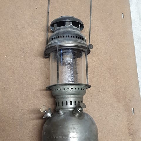 Belysningsett- petroleum fra Forsvaret selges . Aldri brukt den selv, men ser ut til å vere i fin stand. Skulle etter det det ser ut til, vere 2 lamper i kassen, men har kun 1
