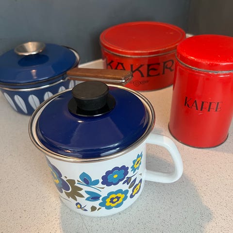 Liten oppbevaringsboks med trelokk, produsert av Sagaform, design Lotta Odelius