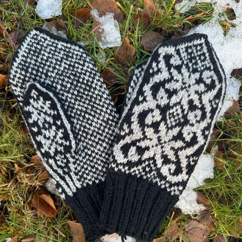 Strikket lue i ull - 8 bladsrose