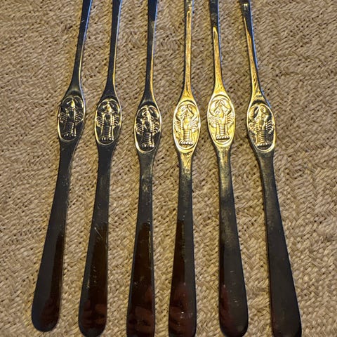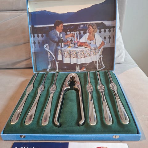 6 skalldyrgafler fra HardangerBestikk. Ubrukt i originaleske.