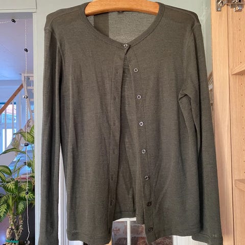 Super cardigan i 80% merinoull med knapper i samme farge. Merinoullen føles myk og behagelig mot huden og puster godt. Cardiganen passer godt til både hverdags og til fest.